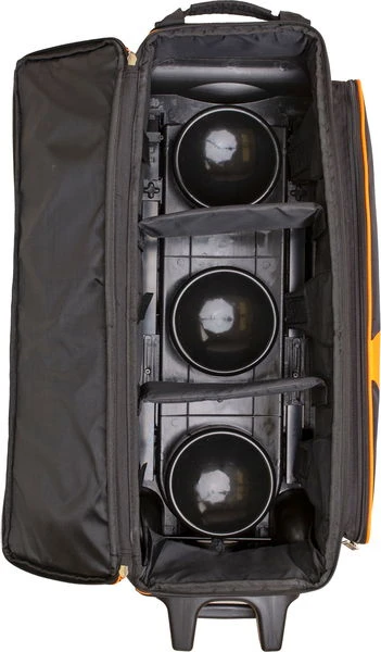 The Brunswick Blitz Triple Roller has the best in class base with flush retractable handle system. This roller offers plenty of storage space for all of your bowling accessories. This roller also features a full length shoe compartment.